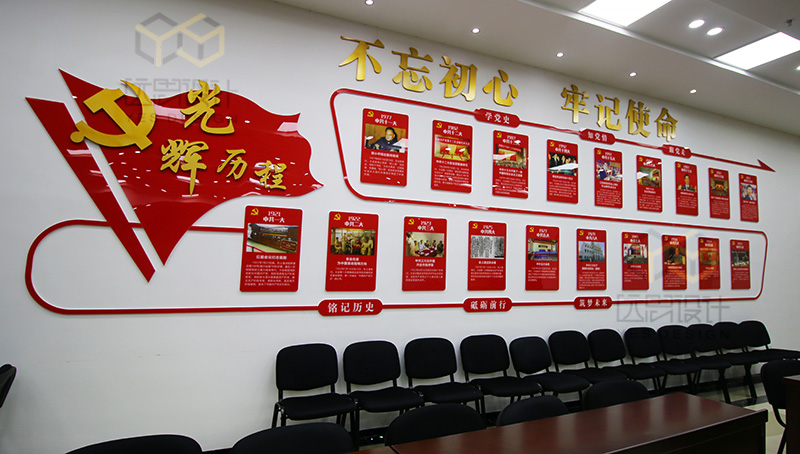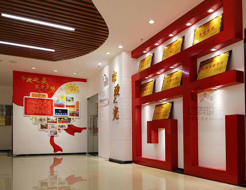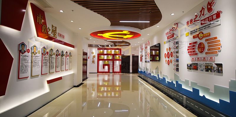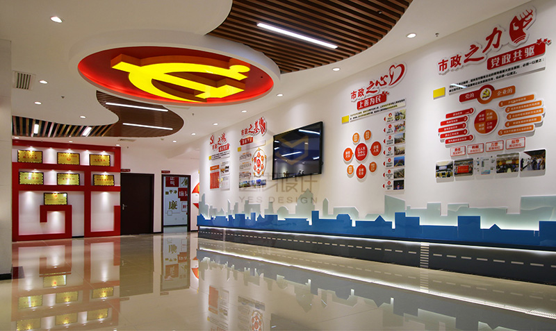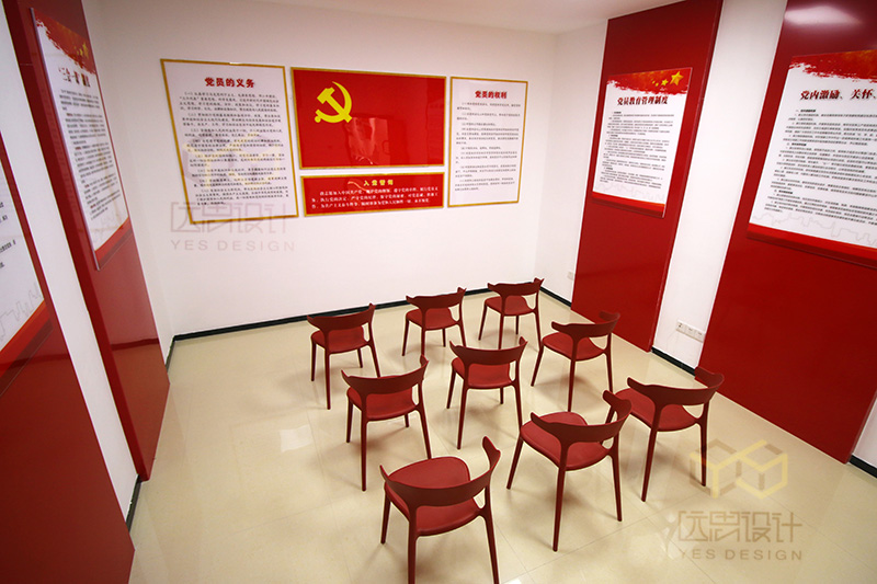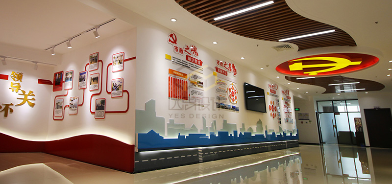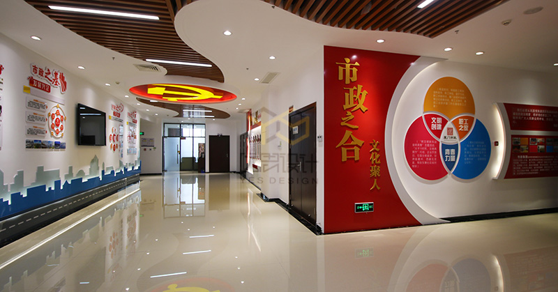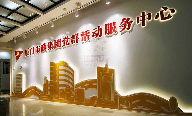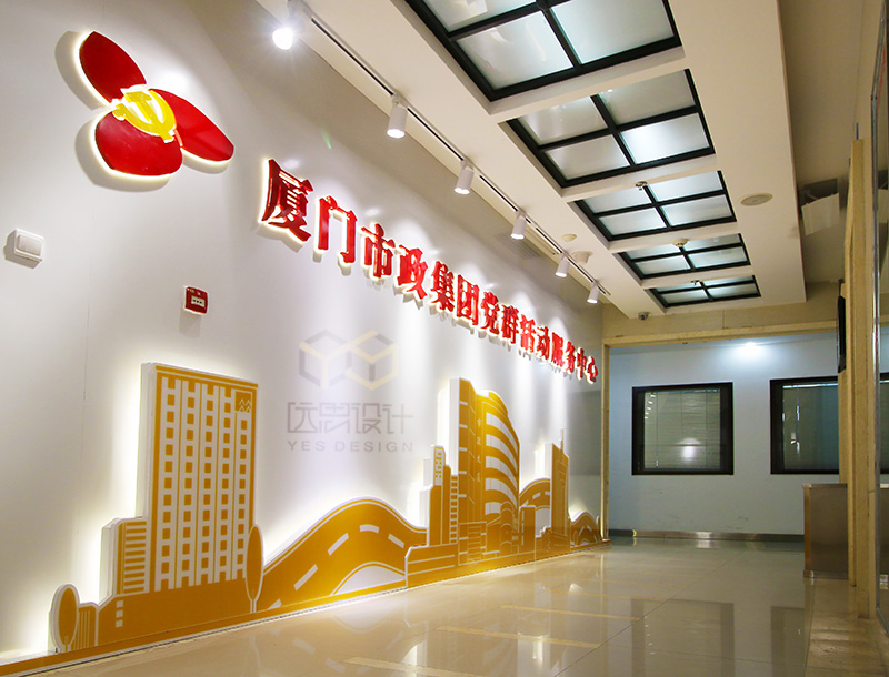 本案是2018年的國企黨建的案例之一,項(xiàng)目竣工完成以后得到市政集團(tuán)領(lǐng)導(dǎo)的高度認(rèn)可,廈門市組織部也給予肯定,將該項(xiàng)目設(shè)立為廈門市城市黨建學(xué)院實(shí)訓(xùn)基地。本案的設(shè)計(jì)難度在于甲方?jīng)]有提供獨(dú)立的空間進(jìn)行改造,而是利用現(xiàn)有辦公空間中的公共走道進(jìn)行改造設(shè)計(jì),在不影響辦公的同時(shí),同樣達(dá)到黨群陣地的功能。我們經(jīng)過多次討論,科學(xué)的布局動線,結(jié)合市政的vi系統(tǒng),總結(jié)歸納了“市政之魂、市政之基、市政之力等黨建品牌”,生動形象的展現(xiàn)了國企姓黨的屬性,以及黨建對市政集團(tuán)發(fā)展的引領(lǐng)和促進(jìn)作用。