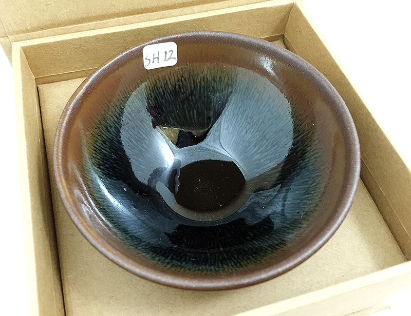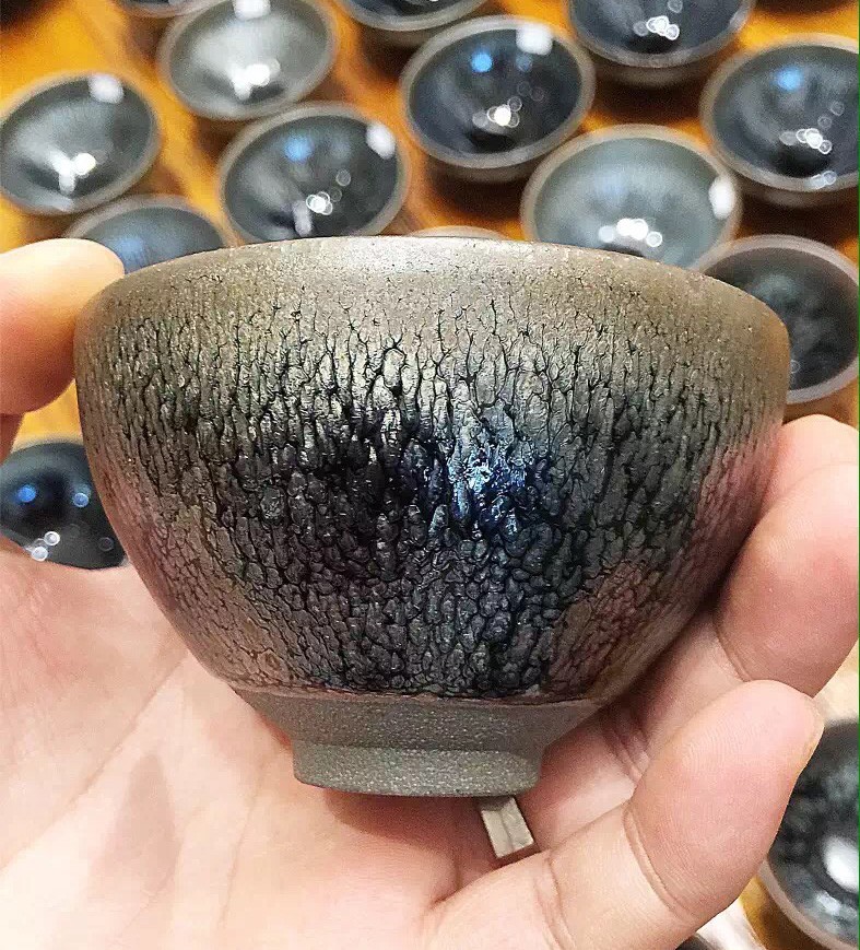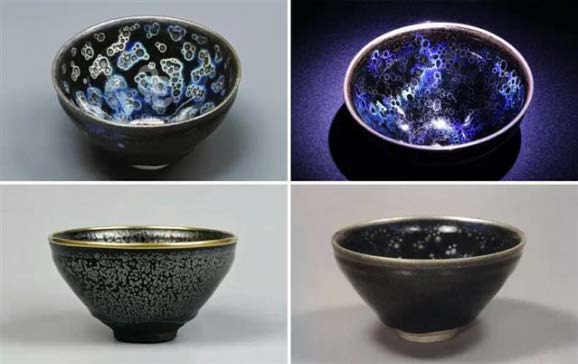 據(jù)公元1511年出版的日本《君臺(tái)觀左右?guī)び洝肥穬?cè)里記載:曜變班建盞乃無上神品,值萬(wàn)匹絹;油滴班建盞是第二重寶,值五千匹絹;兔毫盞值三千匹絹。從這里不難看出,建盞燒制出的黑釉碗盞,其價(jià)值高得令人瞠目。