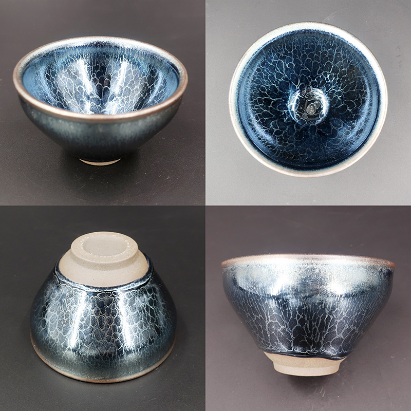 建窯黑瓷的胎質(zhì)由于含鐵量較高,故胎骨厚實(shí)堅(jiān)硬,叩之有金屬聲,俗稱"鐵胎",手感厚重,含砂粒較多,露胎處較粗糙。胎內(nèi)蘊(yùn)含細(xì)小氣孔,利于茶湯的保溫,適合斗茶的需求。