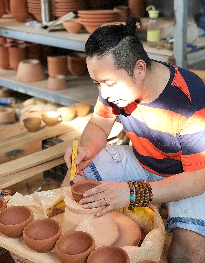 ▲李老師對(duì)建盞器型進(jìn)行推敲創(chuàng)作。